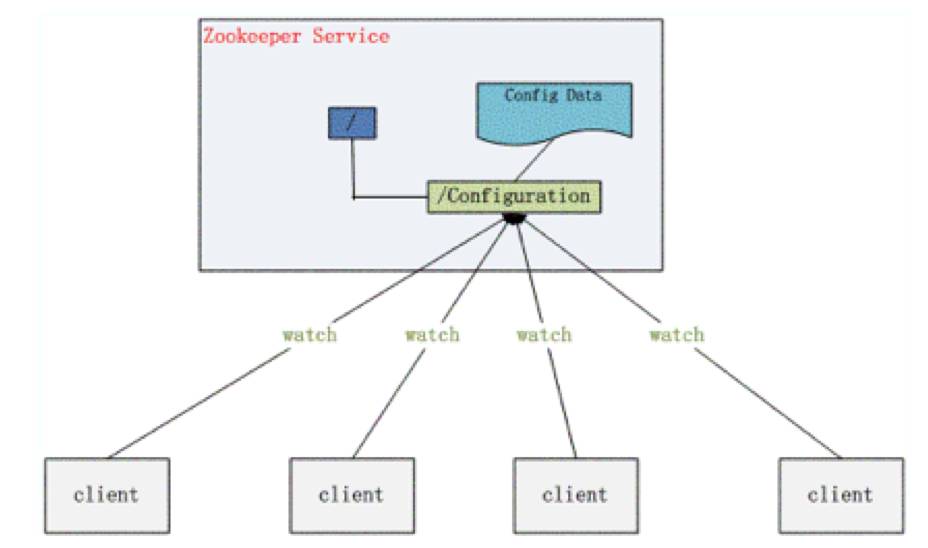 配置文件的同步(放一个watch,检测到数据改动后,立刻同步到其他节点,确保配置文件的一致性)