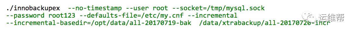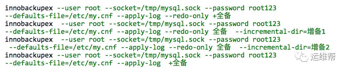注#--incremental-basedir:用来标识当前的增备从哪里开始