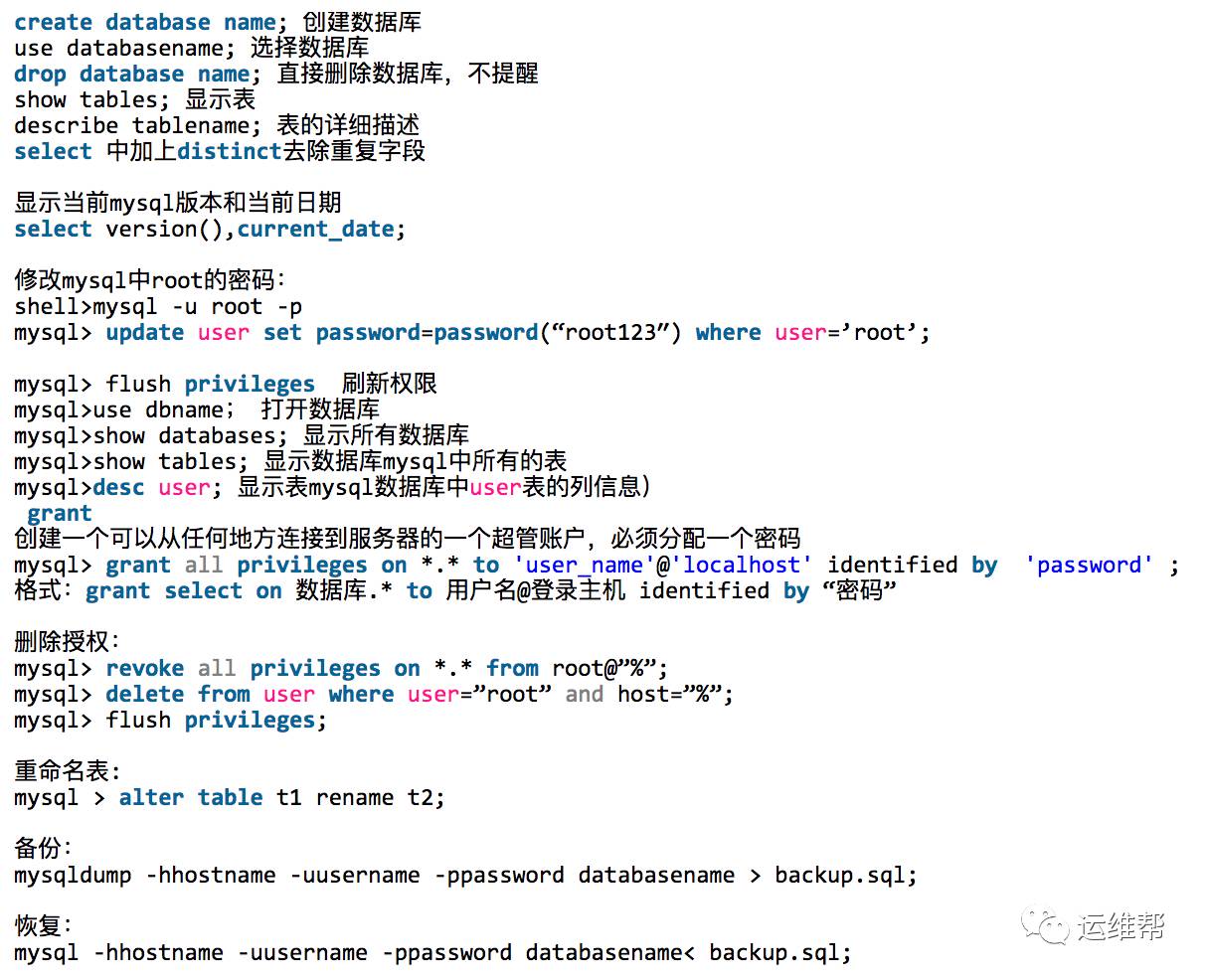 4. 特权账号 all privileges 必须由DBA人员控制