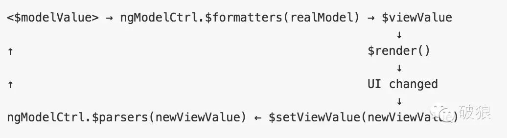 同时,我们也可以利用Angular指令的reuqire来获取到这个ngModelController。如下方式来使用它的$parses和$formaters: