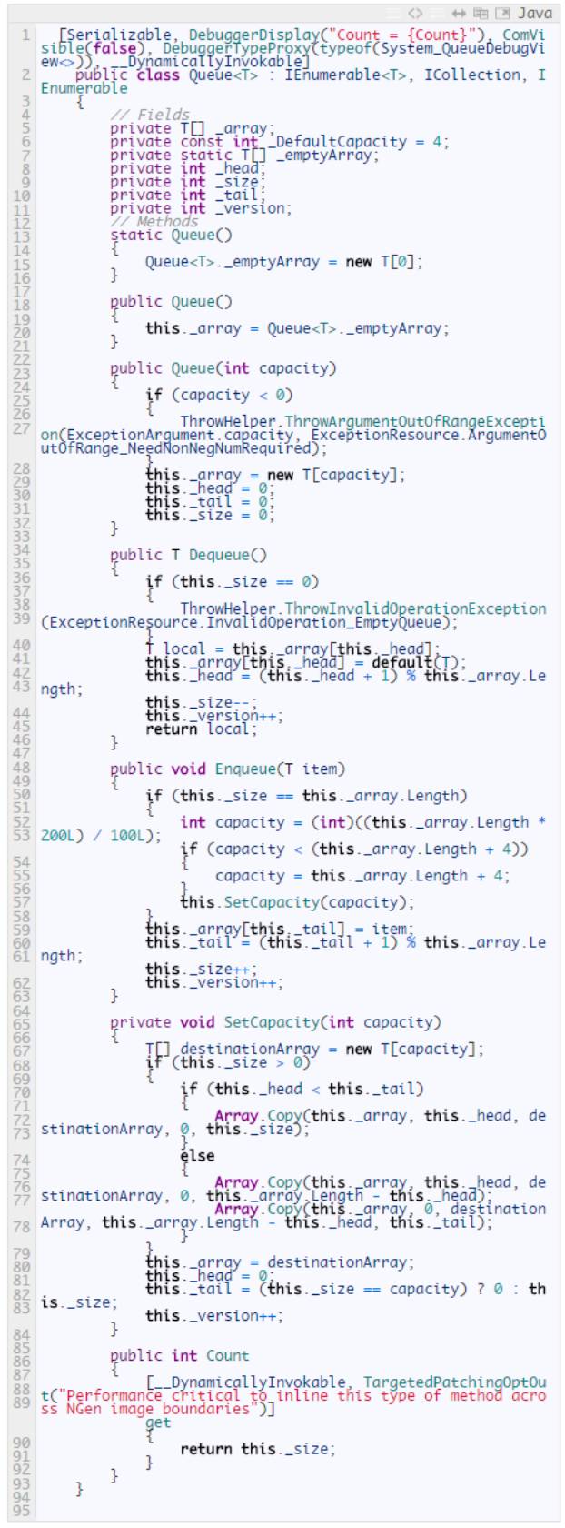 可以看到.NET中Queue的实现也是基于数组的,定义了head和tail,当长度达到数组的容量的时候,使用了SetCapacity方法来进行扩容和拷贝。