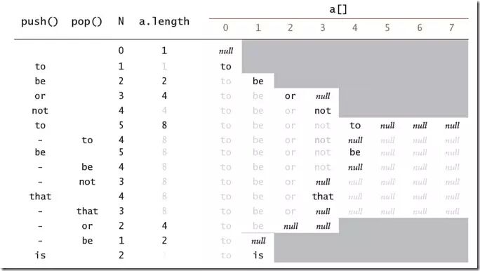 分析:1. Pop和Push操作在最坏的情况下与元素个数成比例的N的时间,时间主要花费在扩大或者缩小数组的个数时,数组拷贝上。