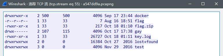 但是通过分析数据包我发现了一些有价值的东西,从第8110和第8974个数据包中发现了ftp的目录结构,追踪一下TCP流,查看目录结构。