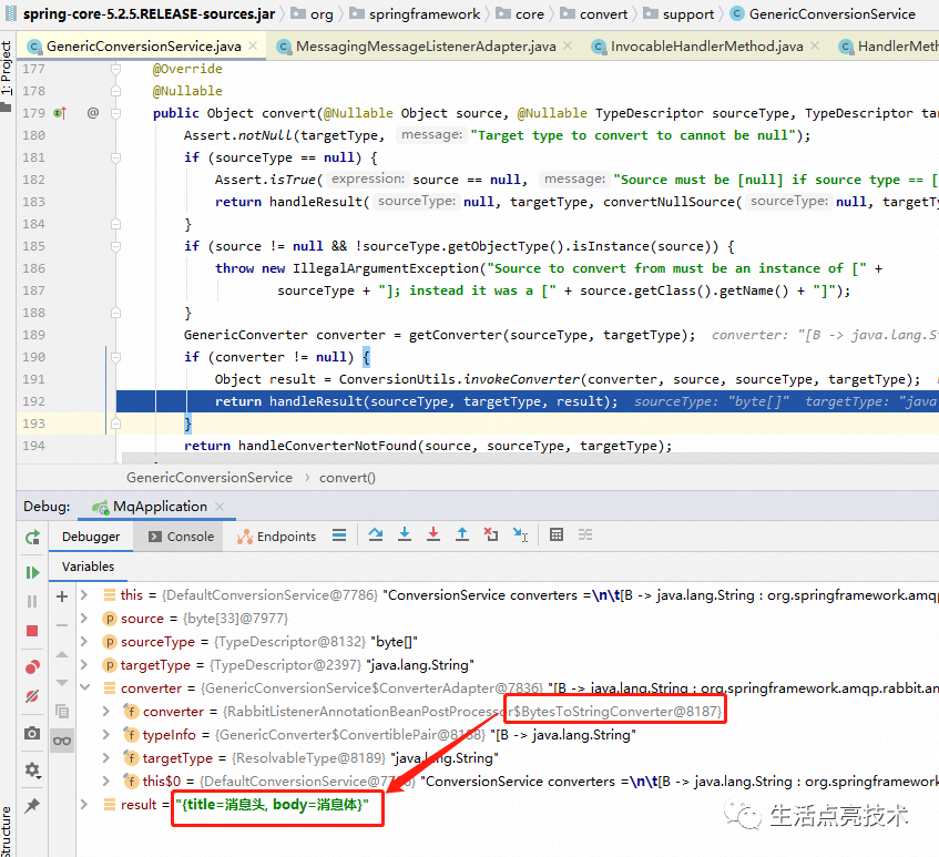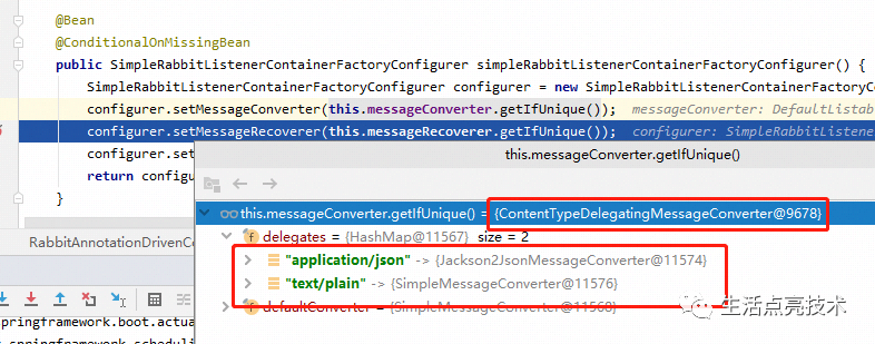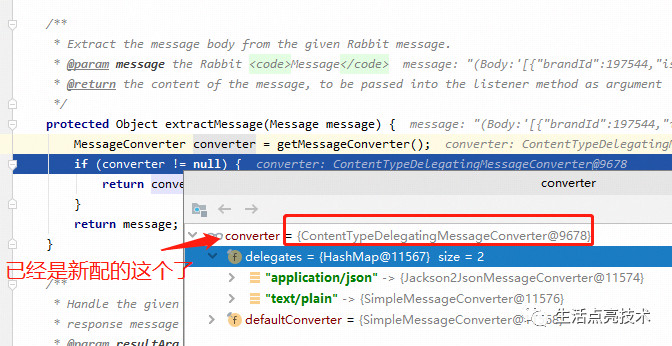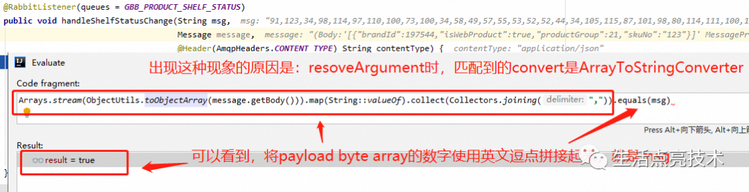 原来spring-amqp自5.1.2开始已经对这个点进行了优化,即不需要配置额外的MessageConverter,原因在之后的resolveArgument环节,匹配到了RabbitListenerAnnotationBeanPostProcessor$BytesToStringConverter。这个Converter就可以将String类型Payload的byte[]可以正常convert为String字符串。