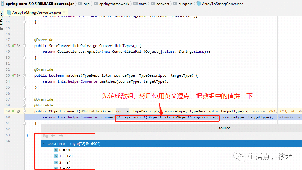 在resolve时,匹配到的converter是ArrayToStringConverter。