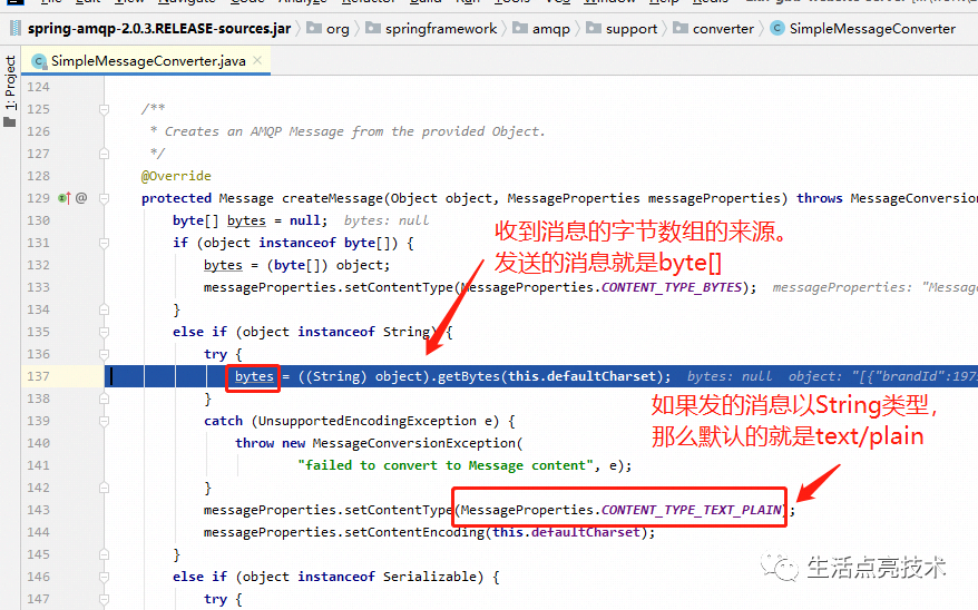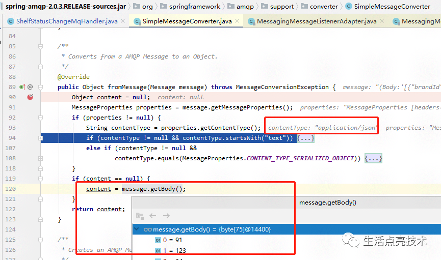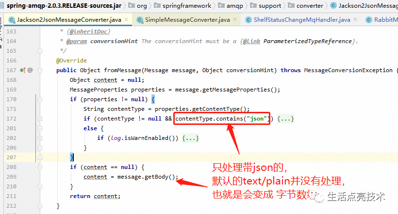 org.springframework.amqp.support.converter.SimpleMessageConverter#fromMessage其实,还有个地方比较关键,这个在后面讲。小提示:spring-amqp的版本号