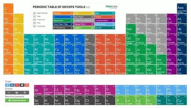 关于DevOps工具,他们以元素周期表的展现形式整理了一个图: