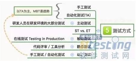 · 测试方式:手工 vs. 自动化的,静态 vs. 动态,主动的 vs. 被动的