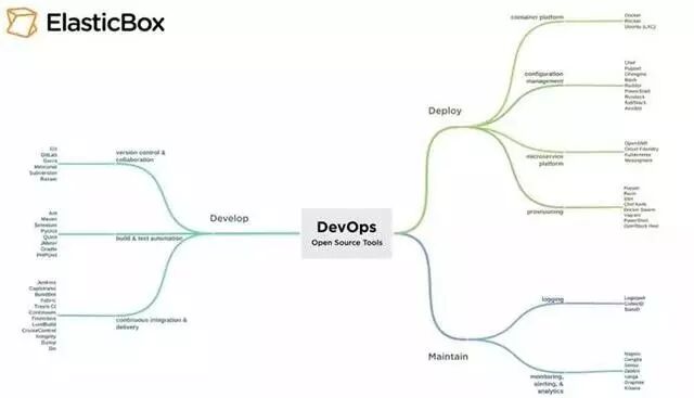 主要从开发、部署、维护三个方面把常用的开源工具做了一个分类: