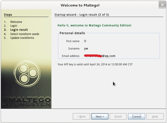 使用Maltego工具收集信息。具体操作步骤如下所示: