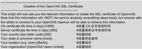 Country Name (2 letter code) [DE]:State or Province Name (full name) [Some-State]:Locality Name (eg, city) []:Organization Name (eg, company) [Internet Widgits Pty Ltd]:Organizational Unit Name (eg, section) []:Common Name (eg, your name or your server's hostname) []:Email Address []:Using configuration from /tmp/openvas-mkcert-client.16792/stdC.cnf