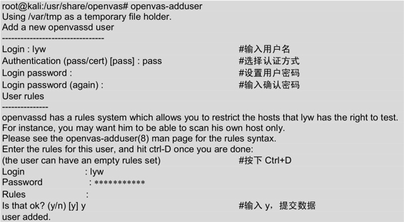 (7)创建一个管理OpenVAS的用户。执行命令如下所示: