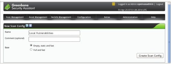 (1)新建名为Local Vulnerabilities的Scan Config。