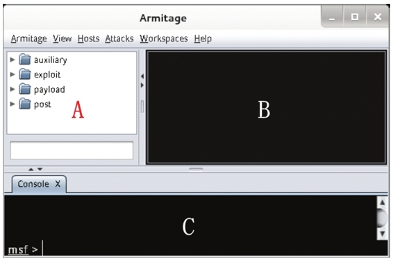 (3)启动armitage工具后,将显示如图6.4所示的界面。
