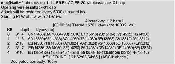 Wired Equivalent Privacy或WEP(有线等效加密)协议是对在两台设备间无线传输的数据进行加密的方式,用以防止非法用户窃听或侵入无线网络。不过密码分析学家已经找出WEP好几个弱点,因此在2003年被Wi-Fi Protected Access(WPA)淘汰,又在2004年由完整的IEEE 802.11i标准(又称为WPA2)所取代。本小节将介绍破解WEP加密的无线网络。