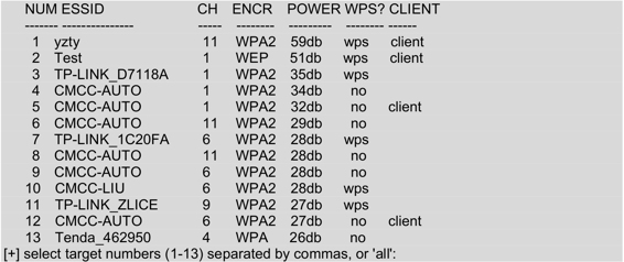从以上信息中,可以看到扫描到13个无线接入点。