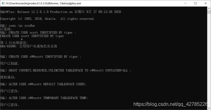 SQL*Plus: Release 12.2.0.1.0 Production on 星期日 9月 27 09:13:38 2020
