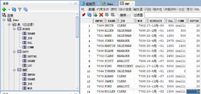 登录scott用户将H:Oracleoracleproduct12.2.0dbhome_1 dbmsadminscott.sql下的sql语句放到SQLDevelop下执行一遍,成功获取数据: