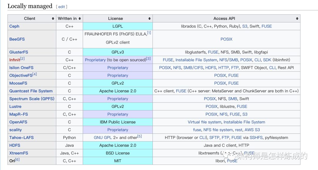 单机计算机的存储始终都有上限,随着网络的出现,多台计算机协作存储文件的方案也相继被提出,现代分布式文件系统的奠基论文是来自Google的《The Google File System》,常见的分布式文件系统有: