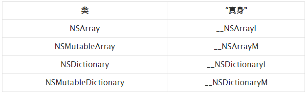 所以也就是我们对NSArray类进行操作其实只是对父类进行了操作,在NSArray内部会创建其他子类来执行操作,真正执行操作的并不是NSArray自身,所以我们应该对其“真身”进行操作。