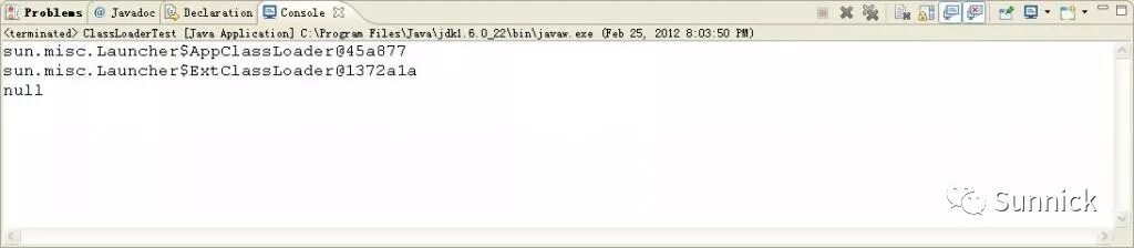 第二行结果说明:AppClassLoader的类加器是ExtClassLoader,即parent=ExtClassLoader。