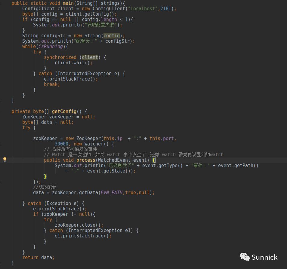 客户端从ZooKeeper查询配置,代码如下: