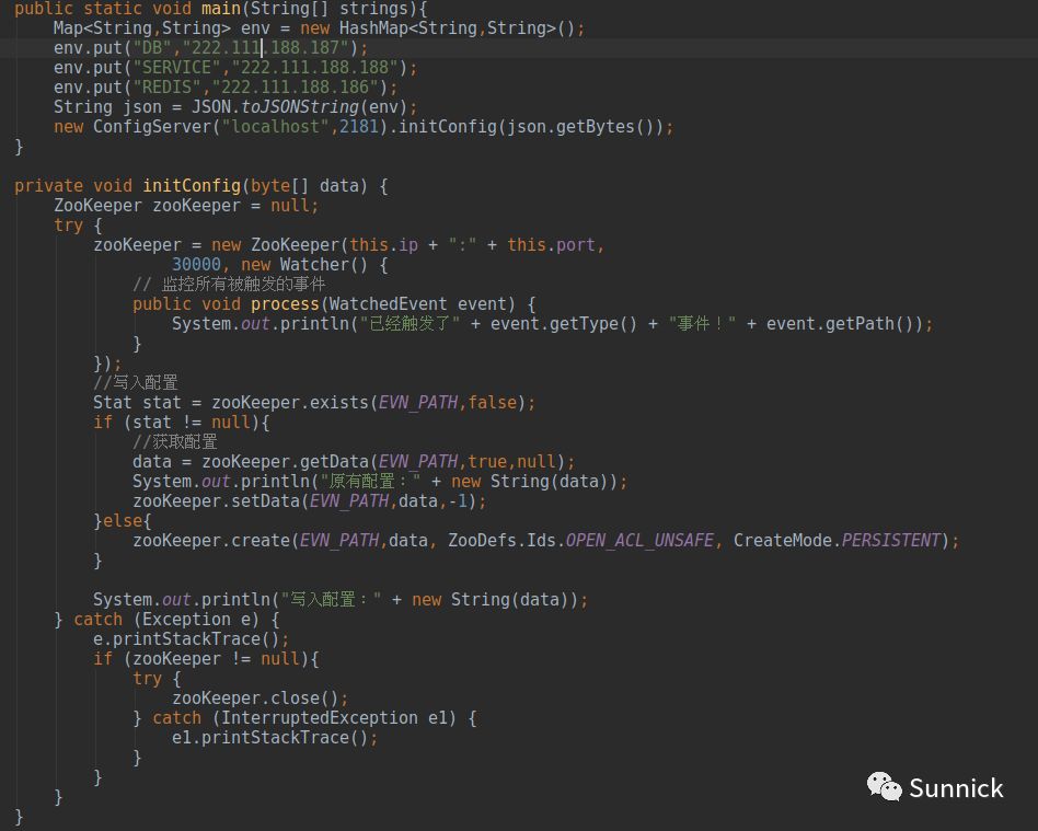 基于ZooKeeper实现简易配置中心的实例代码如下: