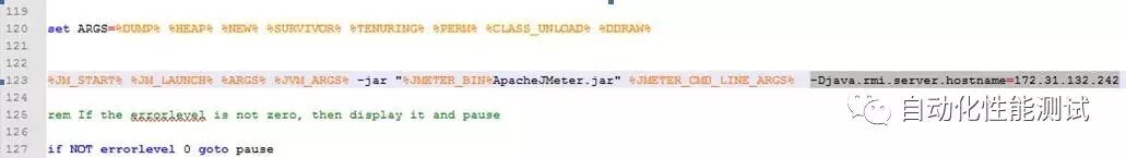如果client有多个ip,也可以在启动的时候指定一个。 如果是windows系统,可以修改jmeter.bat启动脚本,在以下的命令最后,加上如下的配置,写明client这台机器的ip地址即可。