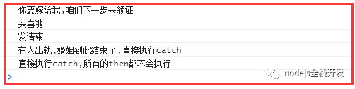 如果不结婚,将结果传递给reject,后面的then一个都不会执行,直接跳到catch里面来执行。