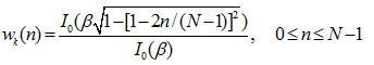 其中:β是一个可自由选择的参数,是第一类修正零阶贝塞尔函数。