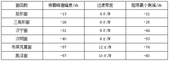 这种方法的重点在于选择某种合适的窗函数。要求窗函数主瓣宽度尽可能窄,以获得最小的过渡带;旁瓣相对值尽可能小,以使得通带波纹小,并且阻带衰减大。