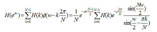H(k)实际上是所要求的滤波器的单位采样响应(h(n))的离散傅里叶变换(DFT),如下关系式: