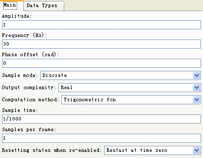 图2-18 sin(2*pi*30*t)参数模块