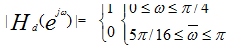 从给出的低通滤波特性||。我们可以看出设计参数f=[1/4,5/16],m=[1,0];