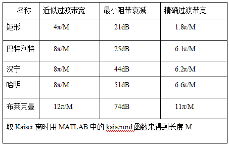 在设计指标中没有直接给出窗函数的,可以利用下面这个表格进行筛选,具体方法如下: