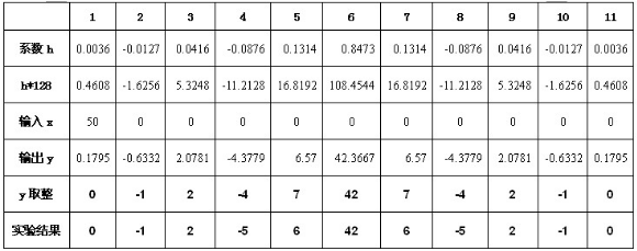 这个方法的实现中,使用了移位代替乘法运算来实现滤波器乘加的方法。由于滤波器系数都是小数,所以我们先左移7位(即放大128倍),再用相应的移位来近似这些系数,最后经过乘加运算得到结果,对这个结果再右移7位(即缩小128倍)即可得出正确的结果。各个系数的移位情况如下:其中2表示左移1位,1表示不移位,0.5表示右移1位,其他依次类推: