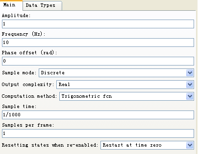 图2-19 sin(2*pi*10*t)参数模块