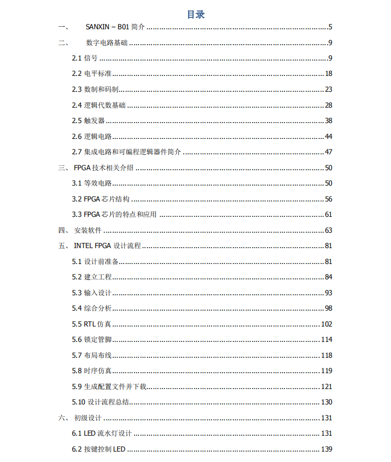 本教程适合新手以及入门学习FPGA,Verilog HDL ,非常不错,下面给大侠列一下目录,可以看看,有需要的可以下载,参考学习。