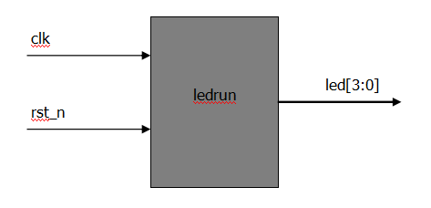 module ledrun (input wire clk,// 50MHzinput wire rst_n, // low validoutput reg [3:0] led // high valid);parameter T_1s = 50_000_000;reg [25:0] cnt;always @ (posedge clk, negedge rst_n) beginif (rst_n == 1'b0)cnt <= 26'd0;elseif (cnt < T_1s - 1'b1)cnt <= cnt + 1'b1;elsecnt <= 26'd0;endalways @ (posedge clk, negedge rst_n) beginif (rst_n == 1'b0)led <= 4'b0001;elseif (cnt == T_1s - 1'b1)led <= {led[2:0], led[3]};elseled <= led;endendmodule