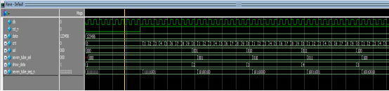 在仿真图中,将cnt、sel、show_data信号调出;将data信号设置为十六进制显示,cnt设置为无符号位显示,sel设置为无符号位显示,show_data设置为十六进制显示。
