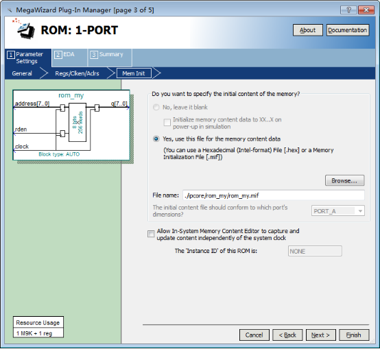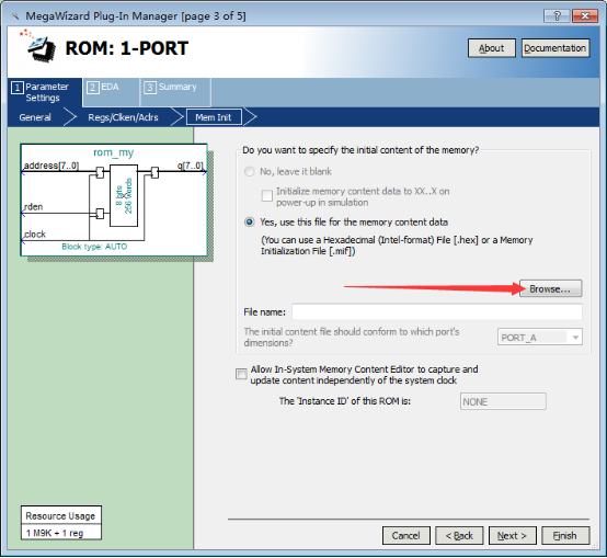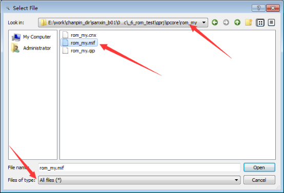 选择browse···,找到qprj -> ipcore -> rom_my -> rom_my.mif。