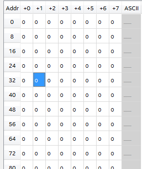 这里的每一个小方格都是一个存储空间。排列方式按照基地址加偏移地址的方式分布。例如:图中选中的蓝色方格的地址为32+1。
