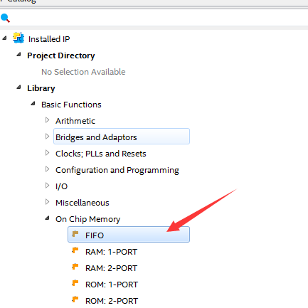 quartus软件中提供了FIFO的ip core,设计者不需要自己设计可编程逻辑和SRAM组成FIFO。