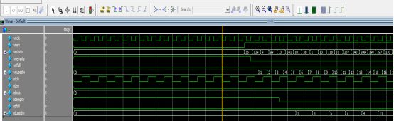 通过RTL波形可以看出写一侧的信号同步于wrclk,读一侧的信号同步于rdclk。