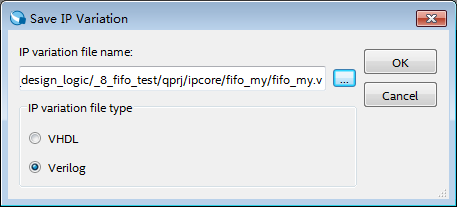 选择verilog,选择路径为ipcore->fifo_my->,命名为fifo_my。点击OK。