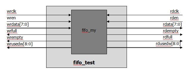 此模块命名为fifo_test,fifo_my为调用的ip core。