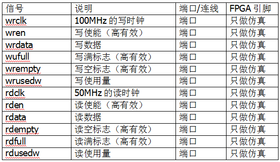 设计宽度为8、缓冲深度为256、输入速率为100MHz、输出速率为50MHz和各类标志信号的FIFO。