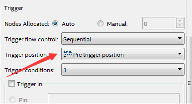 逻辑分析仪提供三种选择。Pre表示12%的存储深度用作触发事件之前,88%的存储深度用作触发事件之后;Center表示50%的存储深度用作触发事件之前,50%的存储深度用作触发事件之后;Post表示88%的存储深度用作触发事件之前,12%的存储深度用作触发事件之后。