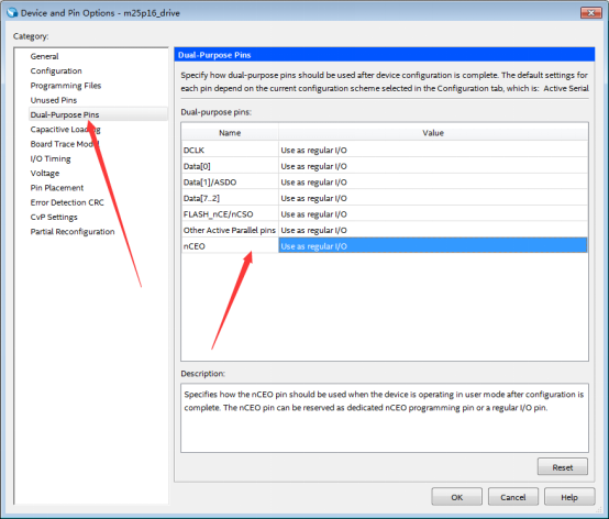 选择Dual-purpose pins,将其中所有的功能改为普通IO。