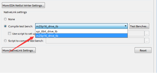 选择testbench时,注意选中设置的m25p16_drive_tb。